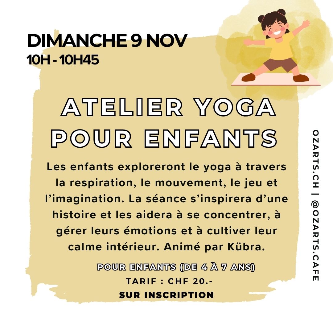 Un atelier ludique et bienveillant où les enfants découvrent le yoga à travers le mouvement, le jeu, l’imagination et la respiration. Chaque séance est basée sur une histoire ou un thème, invitant les enfants à partir en exploration (dans la jungle, sous l’océan, dans l’espace, etc.) tout en apprenant à se concentrer, à gérer leurs émotions et à trouver le calme. L’atelier se termine par une petite activité apaisante que les enfants peuvent emporter chez eux, afin que les bienfaits se prolongent après le cours.