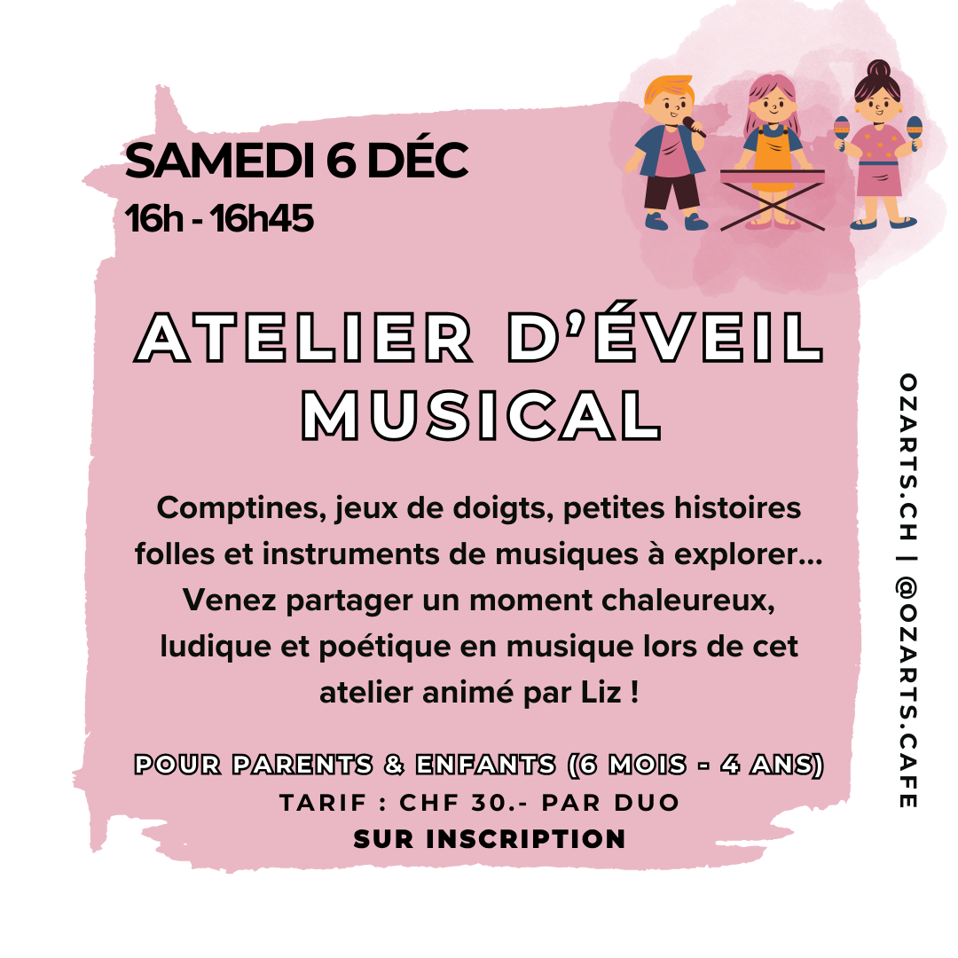 Atelier animé par Liz Moscarola, musicienne et professeur d'éveil musical à l'Atelier Musiquezag à Lausanne.