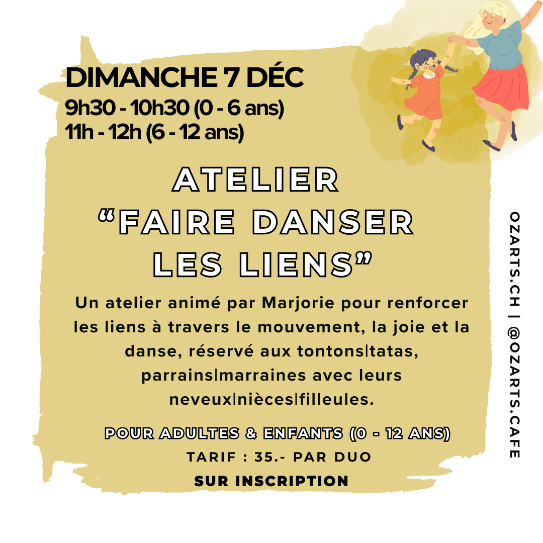Inscription : veuillez envoyer un mail à hello@ozarts.ch avec le nombre et les noms des participant.e.s., et la séance à laquelle vous souhaitez participer.