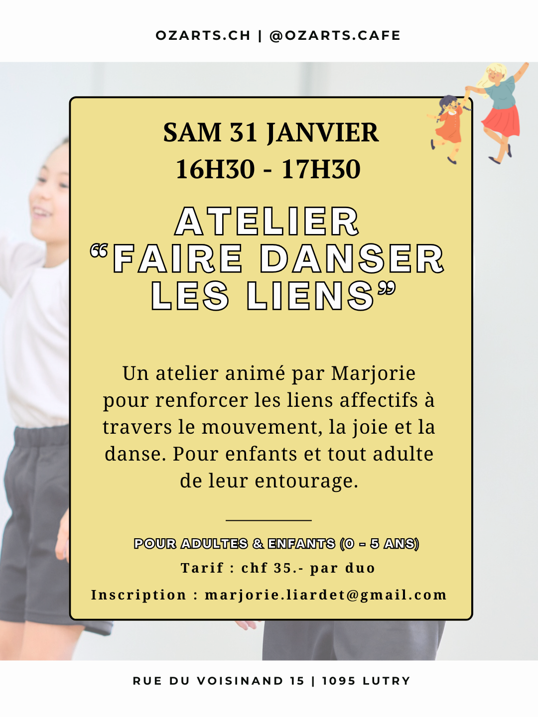 OZarts propose une programmation riche et variée, spécialement conçue pour les habitants et les familles de la région de Lutry. Des ateliers et activités, animés par des professionnels, couvrent une large gamme de thèmes d'intérêt général, adaptés à notre public diversifié. Nous mettons un point d'honneur à collaborer avec des talents locaux, afin de valoriser les compétences de proximité et de renforcer la vie de quartier. En parallèle, des événements éphémères sont régulièrement organisés lors des grandes manifestations de Lutry, offrant ainsi des moments uniques de partage et de découverte.